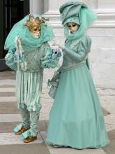 - Eine Stufe herabschreitender Mann in historischem Kostüm